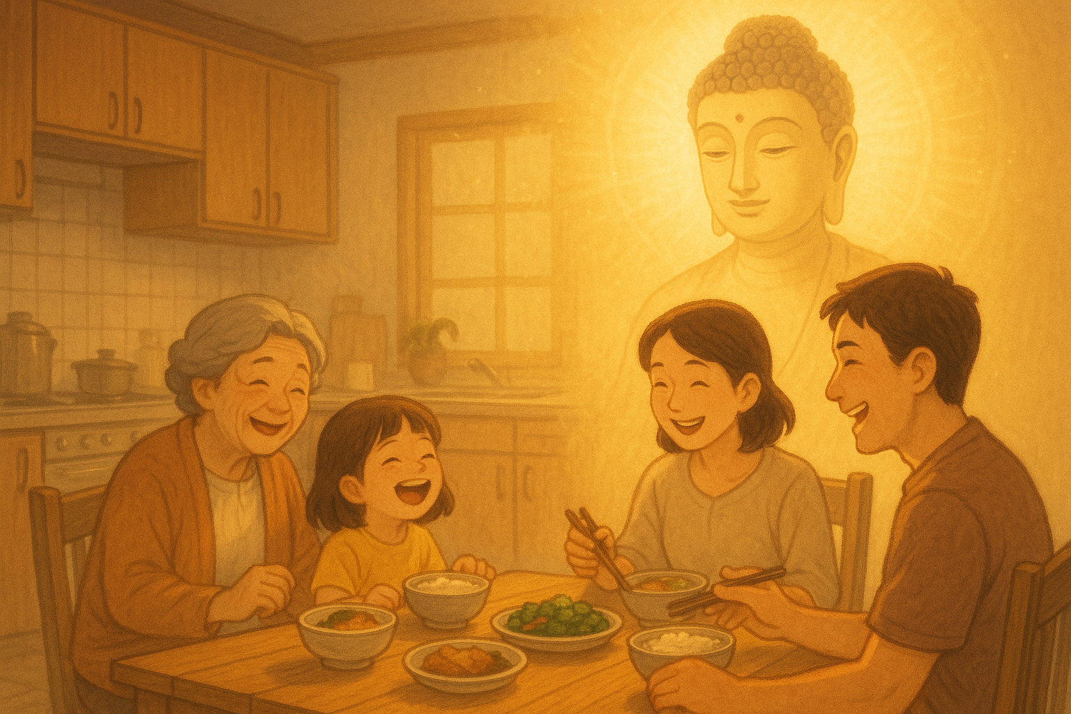 무엇보다 불교는 멀리 있는 것이 아니라, 우리의 일상 가까이에 있습니다. 가족이 모여 함께 식사하며 웃는 그 순간에도 부처님의 은은한 빛은 우리 곁을 감싸고 있습니다. 불교는 특별한 의식 속에서만 존재하는 진리가 아니라, 지금 이 자리에서 우리가 어떻게 살아가느냐에 달려 있습니다.
